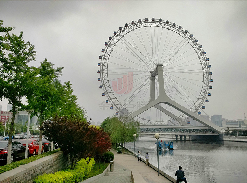 天津之眼(The Tientsin Eye),全稱天津永樂橋摩天輪(The Yongle Bridge Tientsin Eye),跨海河連接河北區(qū)與紅橋區(qū),是一座跨河建設(shè)、橋輪合一的摩天輪,兼具觀光和交通功用。