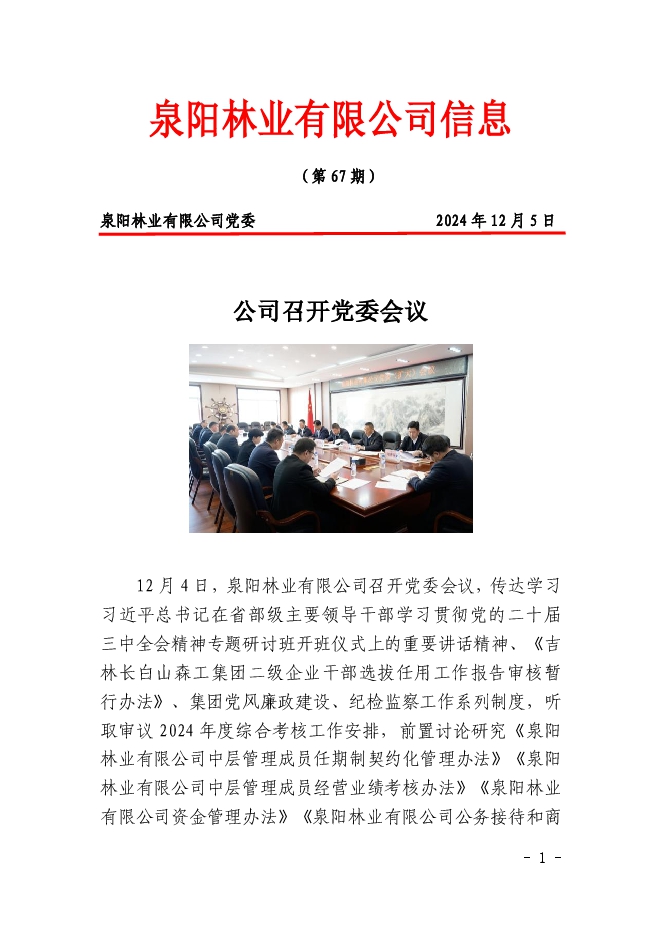 泉陽(yáng)林業(yè)有限公司信息2024年第67期