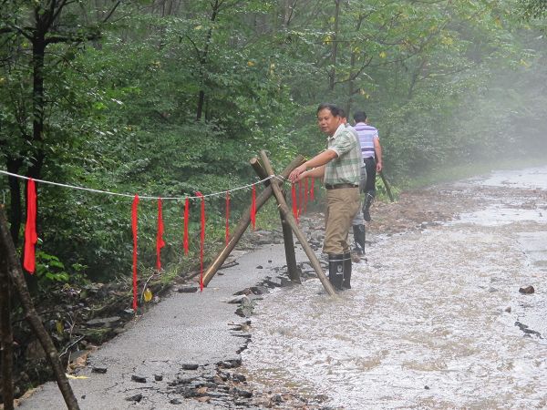 在8月16日晚至17日凌晨連續(xù)3小時的特大暴雨中,降水量達66.5毫米。山洪突襲,河水猛漲,三公里油庫、泉陽泉水源地、泉陽湖電站告急,電站大壩溢洪壩最大過流超過1.3米。泉陽局立即啟動抗洪搶險應(yīng)急預(yù)案,防災(zāi)減災(zāi)總指揮、局長馬德林,副總指揮、副局長李振華、董志國、張金斗第一時間抵達搶險一線,親自指揮抗洪搶險。汽運處、泉水林場、供水公司出動搶險人員200多人,動用挖掘機2臺、裝載機1臺、翻斗車3臺、編織袋3000多條,緊急加固、加高堤壩,連夜冒雨奮戰(zhàn)到17日凌晨5時30分,不僅保住了水源地、大壩安全,而且確保了林區(qū)供水沒有中斷。