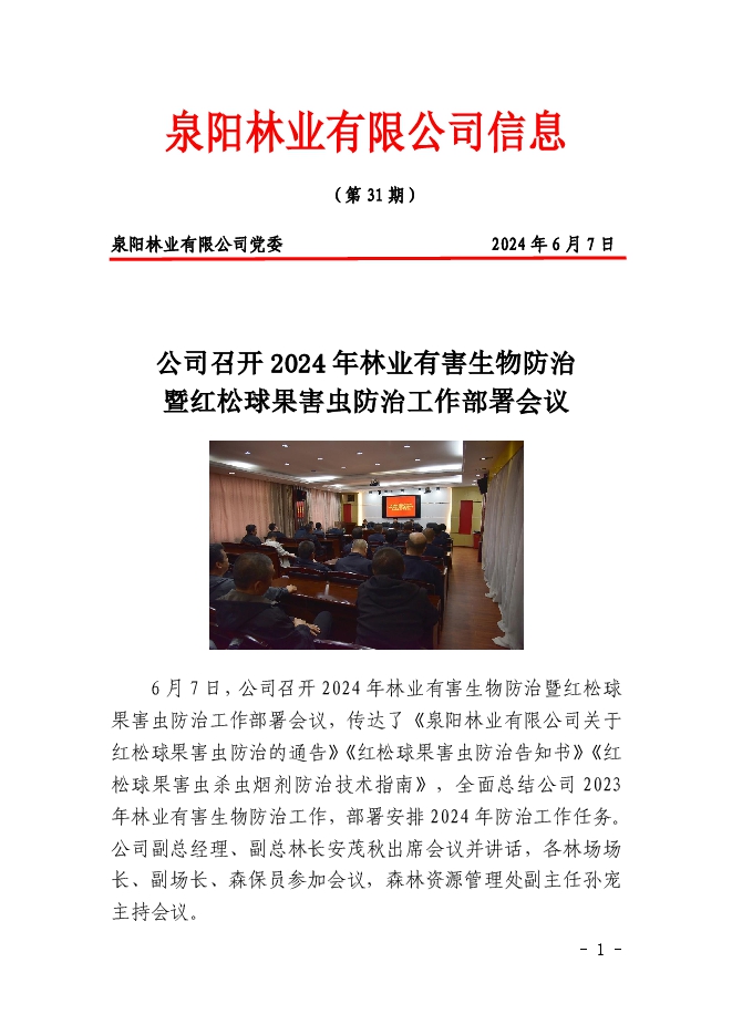 泉陽(yáng)林業(yè)有限公司信息2024年第31期