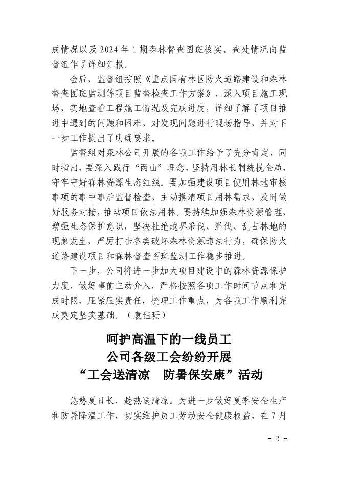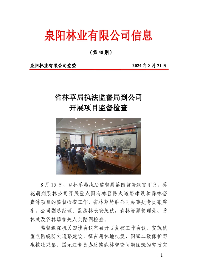 泉陽(yáng)林業(yè)有限公司信息2024年第48期