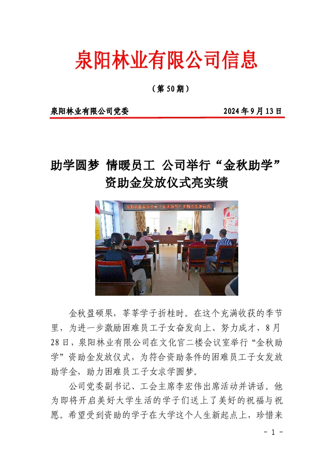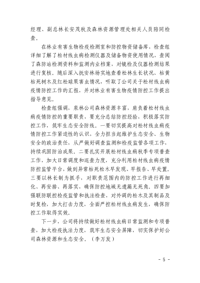 泉陽林業(yè)有限公司信息2024年第50期