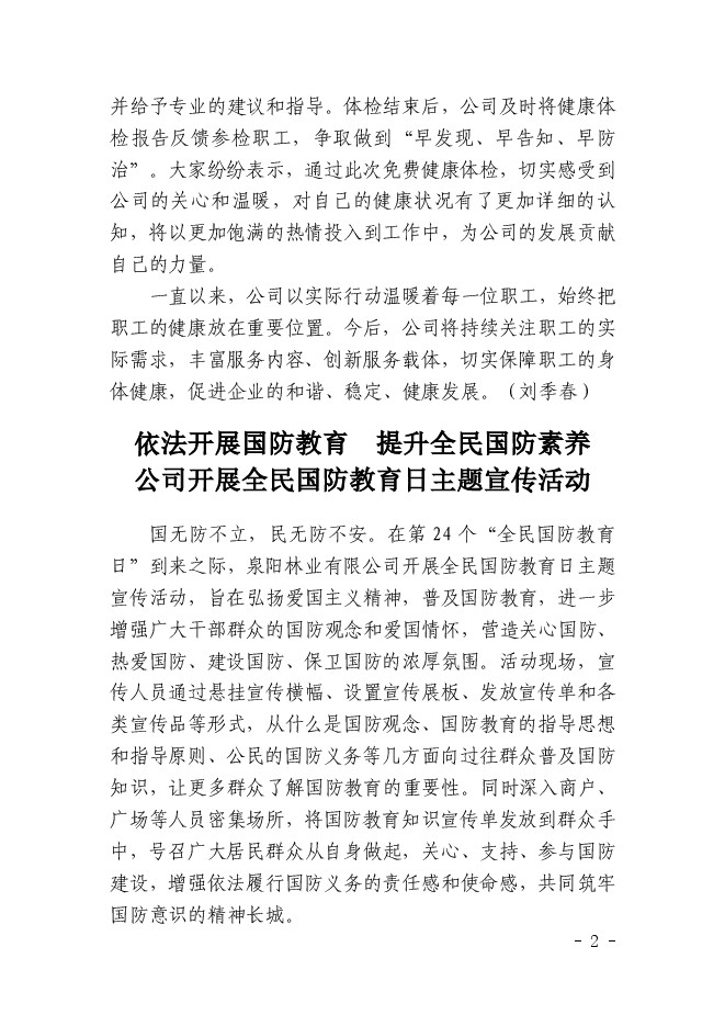 泉陽林業(yè)有限公司信息2024年第54期